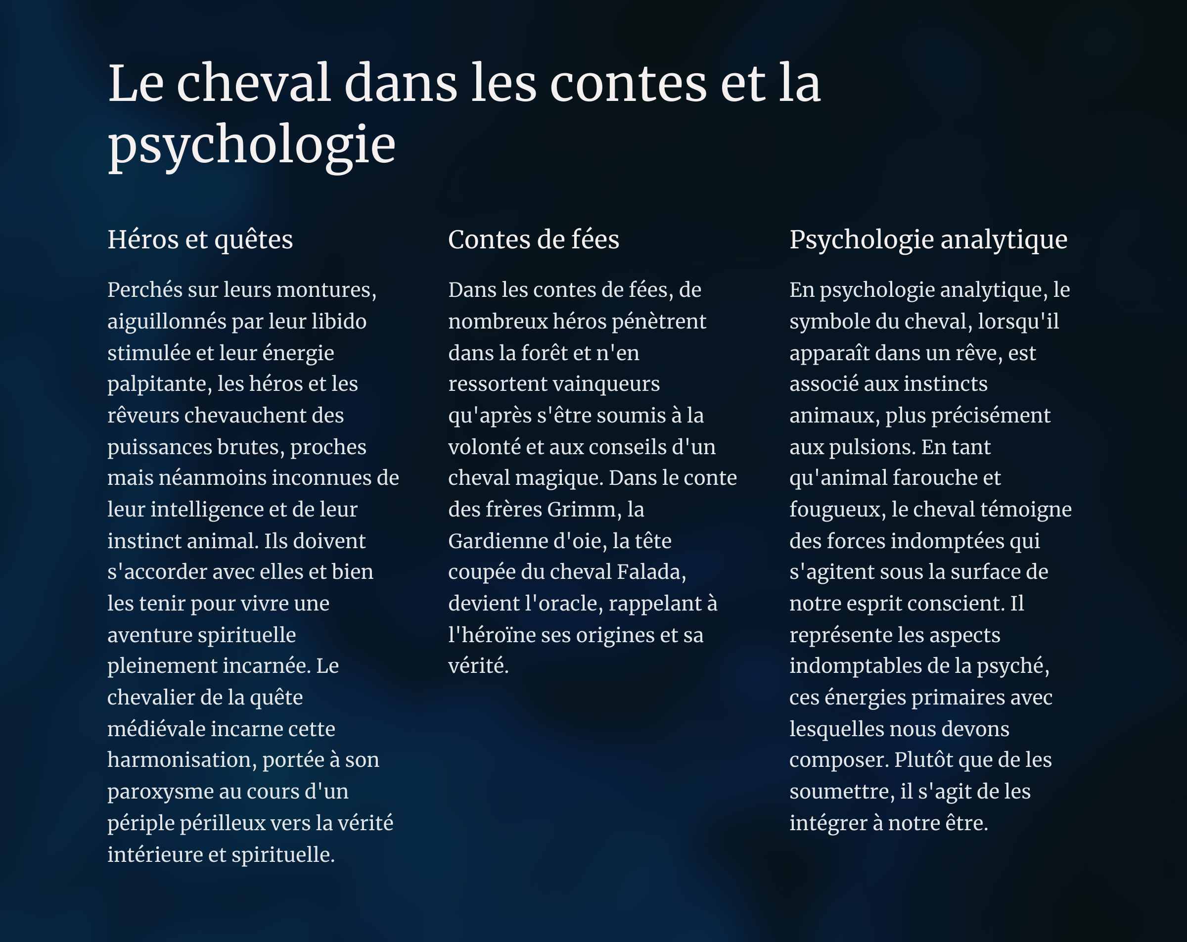 Bienvenue, chers explorateurs et chères exploratrices de la psyché. Aujourd’hui nous allons explorer ensemble la symbolique du cheval.