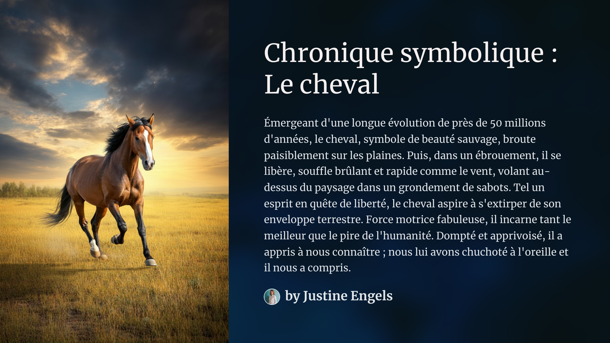 Ou en podcast sur Spotify https://podcasters.spotify.com/pod/show/engelsjustine/episodes/12Chronique-symbolique–Le-cheval-e2pjotb