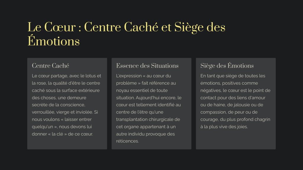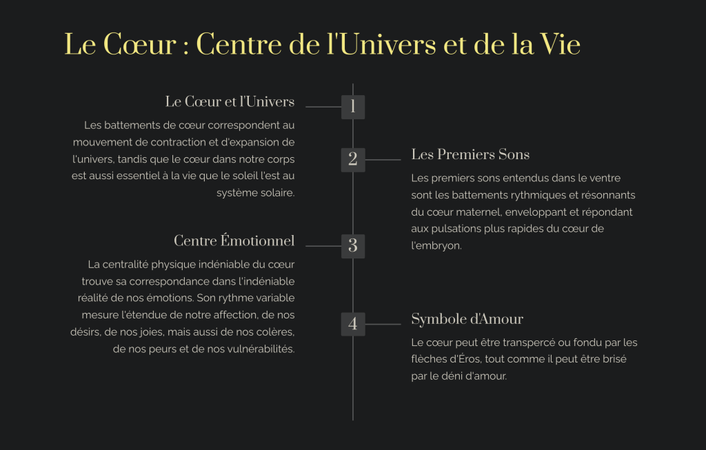 Je vous invite à réfléchir à la manière dont votre cœur, au-delà de ses battements, résonne avec votre vie émotionnelle et spirituelle.